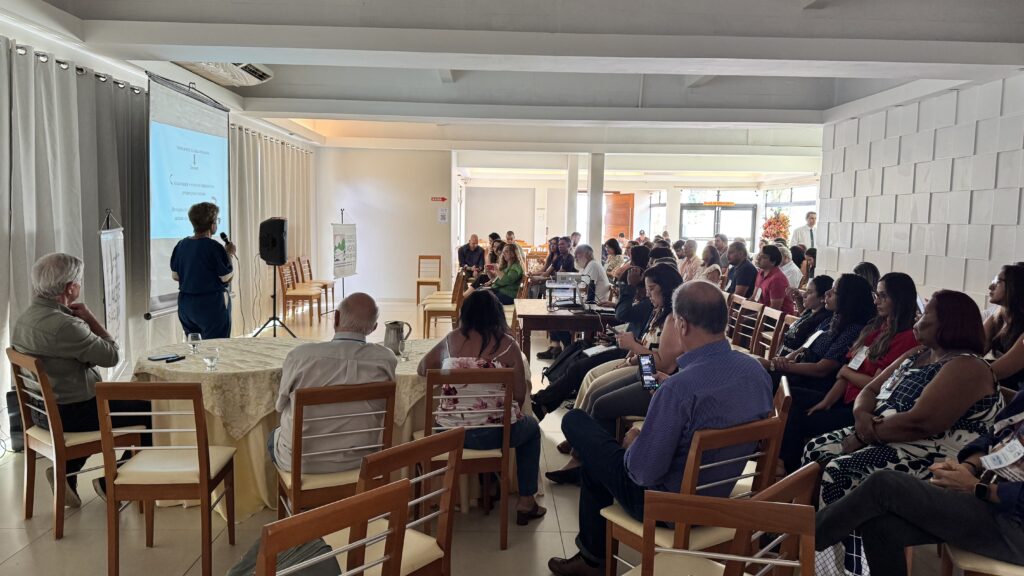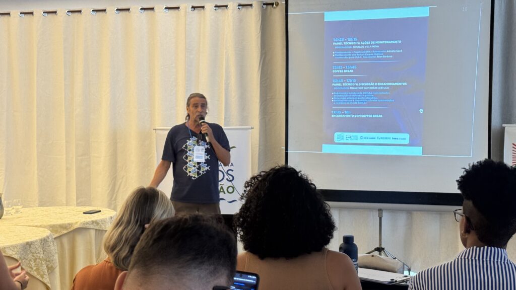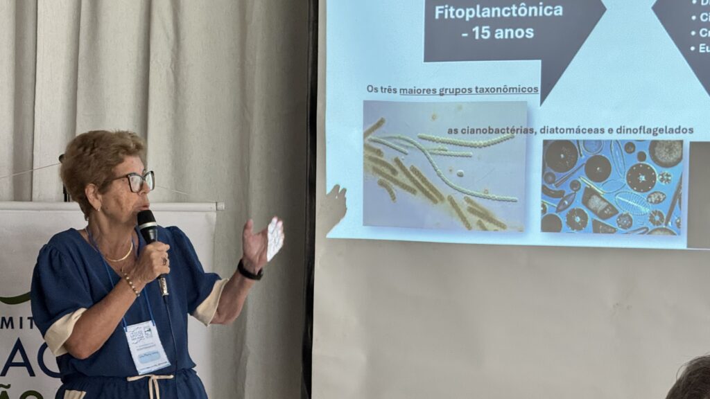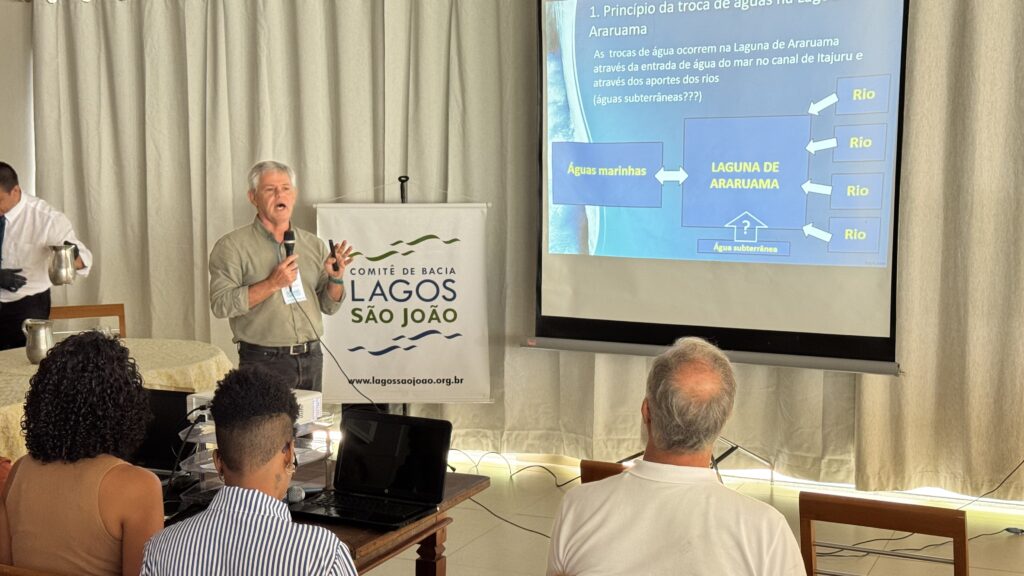 Na sequência, especialistas apresentaram os resultados do monitoramento da Lagoa de Araruama, abordando análises físico-químicas da água, a evolução do fitoplâncton e estudos sobre os sedimentos ao longo dos anos. Participaram desse momento o Arnaldo Villa Nova, a Dra. Maria Helena e o pesquisador Júlio Wasserman, destacando a importância do acompanhamento contínuo para compreender a dinâmica do ecossistema lagunar.